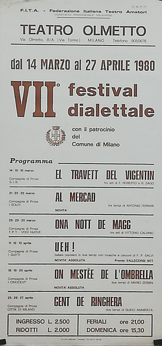 dal 14 mar.80 al 27 apr.80 | Federazione Italiana Teatro Amatori Comitato Provinciale Milanese |